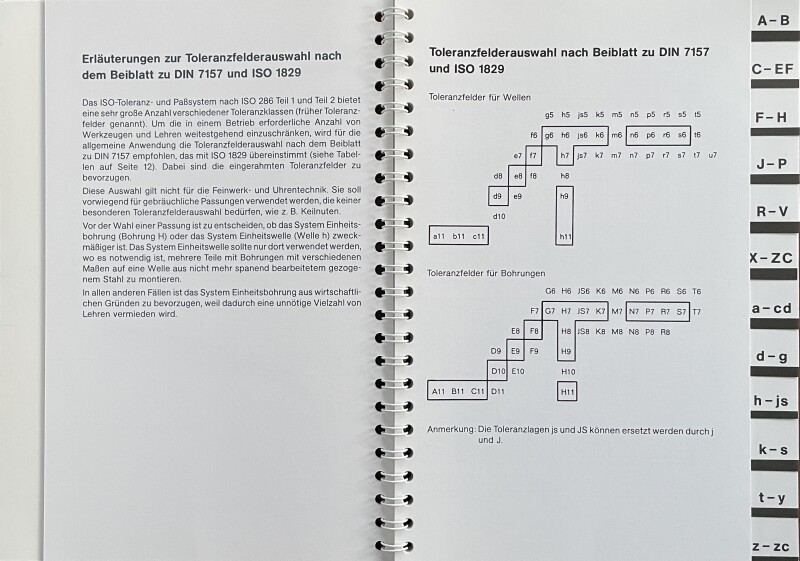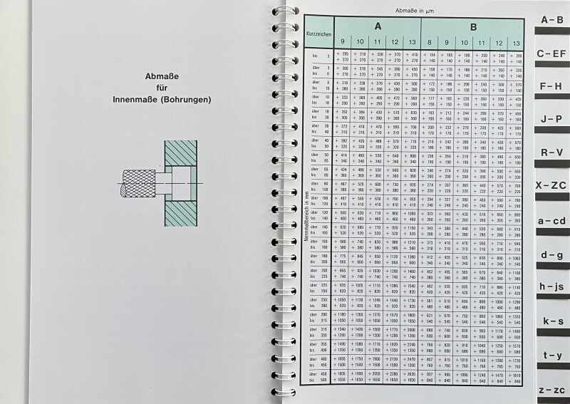 Ein Daumenregister zum schnellen Auffinden der Zahlenwerte ist besonders für den werkstatt nahen Gebrauch zweckmäßig.