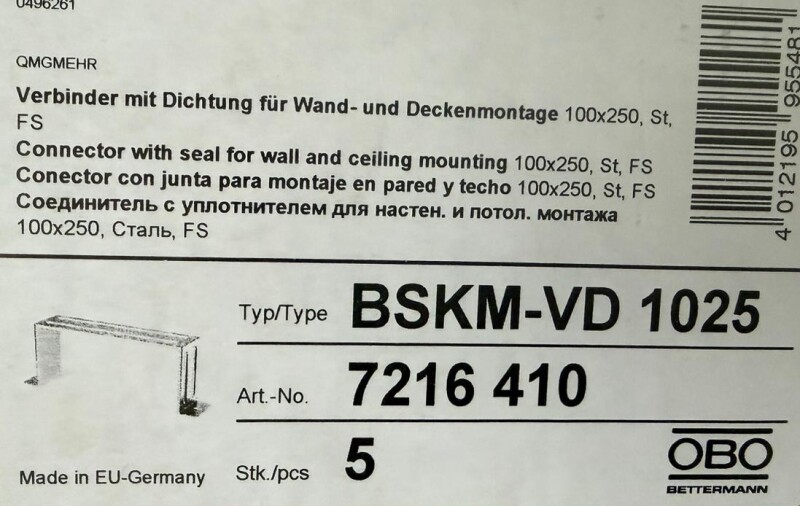 300 lfm Kabelkanäle der Marke OBO Bettermann (Artikelnummern Verbinder: BSKM-VD 1025 7216 410 mit Verbindern für Wand und Deckenmontage