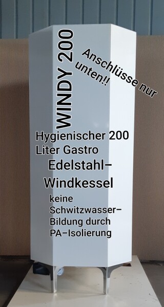 Edelstahl Windkessel 200 250 300 Liter mit Isolierung, damit das Kondenswasser vom Mauerwerk fern bleibt z.B. 200 Liter 600 Euro