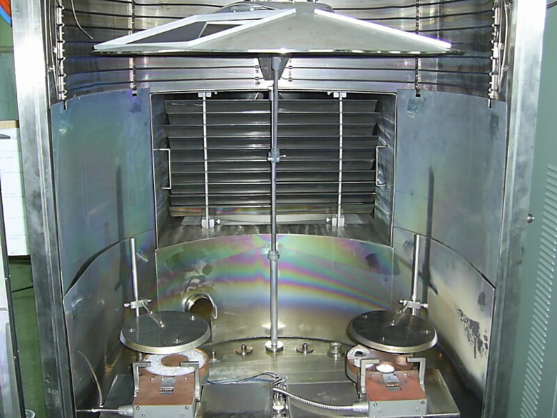 Mit dieser Anlage wurden auf Glas Substraten optische Interferenzfilter als Mehrschichtsysteme mit definiert gesteuerter UV – vis und IR Transmission hergestellt.